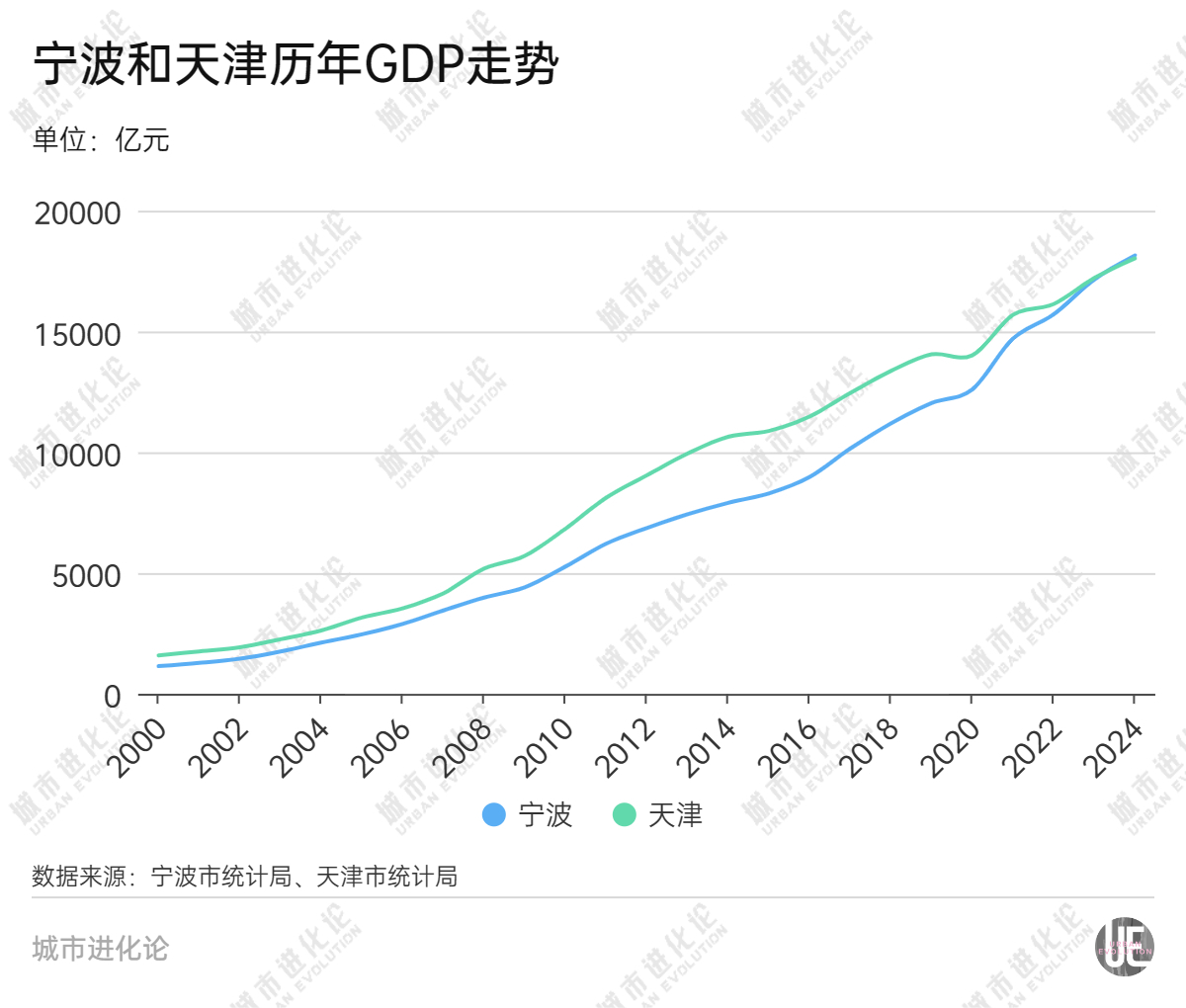 两相对比,宁波GDP以超120亿元的优势,正式超越天津,排名上升至全国城市第11位。这也是宁波经济总量自改革开放以来,首次超越天津。